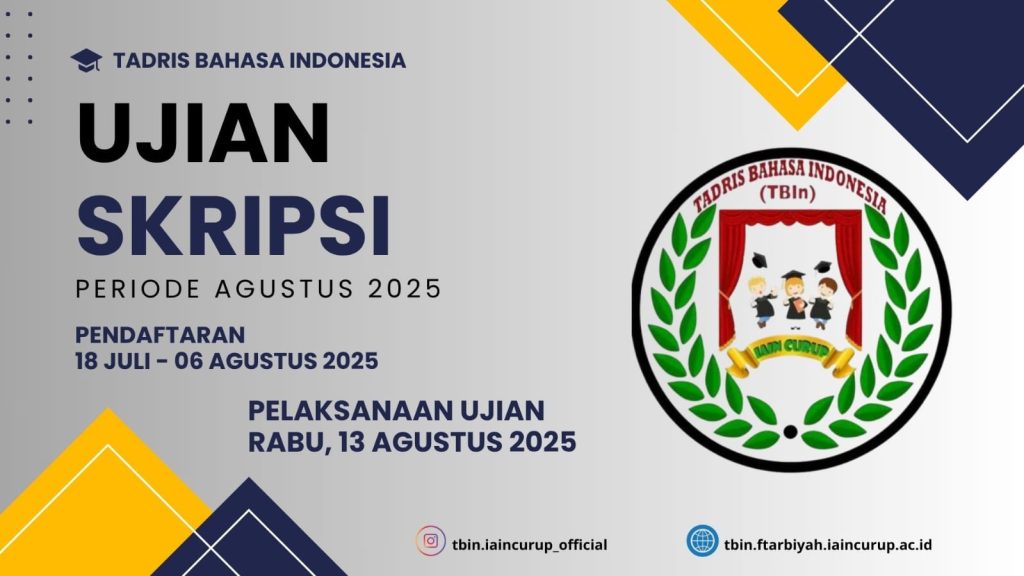 Telah dibuka pendaftaran Ujian Skripsi bagi mahasiswa Tadris Bahasa Indonesia Periode Agustus 2025. SYARAT PENDAFTARAN UJIAN SKRIPSI S.1 Copy Bukti